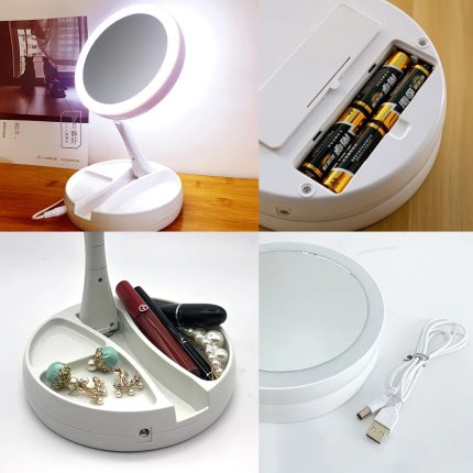 ESPEJO TRIPTICO PARA MAQUILLAJE CON LUZ LED Y AUMENTO USB 29128