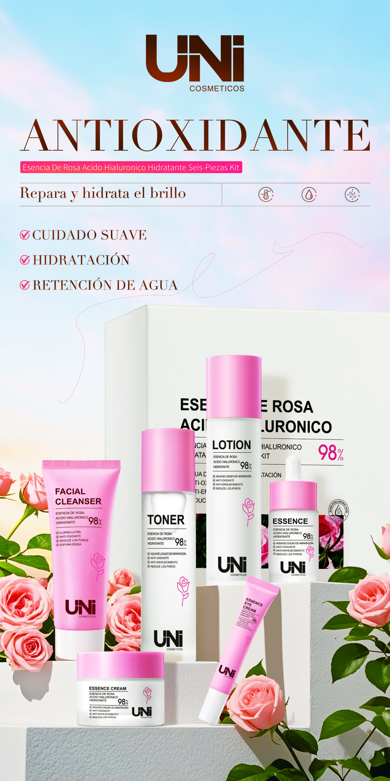 SKU: KIT RITUAL FACIAL DE ROSA ACIDO HIALURONICO DE 6 PIEZAS 27680